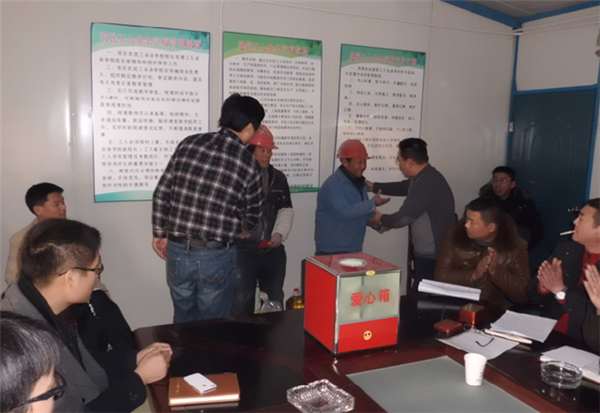 園區(qū)公舍三期西楚金地和白領(lǐng)公寓項(xiàng)目是今年園區(qū)的重點(diǎn)工程,為創(chuàng)建文明工地,構(gòu)建和諧園區(qū),營(yíng)造關(guān)愛幫扶、互助互濟(jì)的良好氛圍,自開工以來,項(xiàng)目部辦公室就設(shè)立了募捐箱,并在元旦即將到來之際,用募集到的善款幫助工地上生活困難的建筑工人,讓困難工人群體感受到社會(huì)的溫暖和正能量,增強(qiáng)其歸屬感,在工地、在園區(qū)也能感受到家的溫馨。