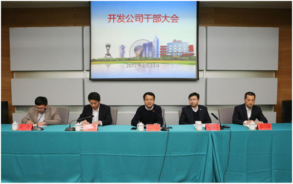 2月23日下午,開發(fā)公司在園區(qū)管委會一樓會議室召開干部大會,宣布公司管理層領(lǐng)導(dǎo)任職調(diào)整決定。園區(qū)黨工委委員、管委會副主任、財政局局長高揚主持會議并講話。公司副總裁、建發(fā)公司執(zhí)行董事劉建華宣讀干部任職文件,離任、新任干部分別作離別感言和表態(tài)發(fā)言。
