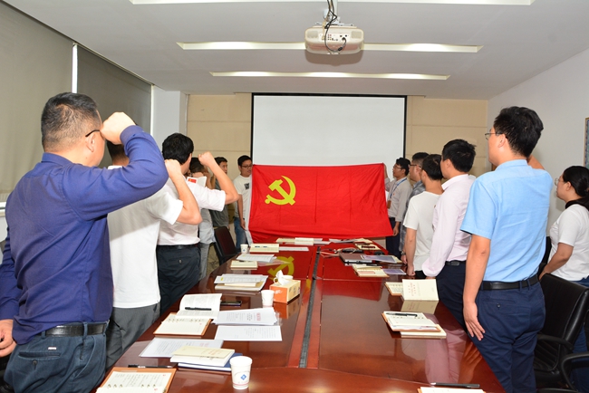 緊接著,開展“四重”活動?;顒忧肮拘姓耸虏繉iT從園區(qū)檔案室調(diào)取每一名黨員入黨志愿書,將內(nèi)容拍好發(fā)到每人,重溫入黨時的難忘經(jīng)歷。在劉建華書記的帶領(lǐng)下,右拳高擎,神情莊重,面對鮮紅的黨旗鄭重宣誓,抒發(fā)對黨的忠誠,踐行黨的宗旨,維護黨的形象和愛黨愛國情懷。