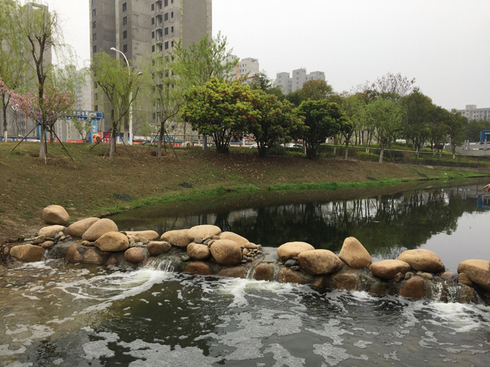 本工程造價(jià)約280萬元,主要對(duì)環(huán)形景觀帶進(jìn)行岸線規(guī)整、雨水口護(hù)砌、河道清淤,并種植沉水、挺水植物,設(shè)置景觀攔水壩及人工填料,改善河道水質(zhì),提升景觀效果。