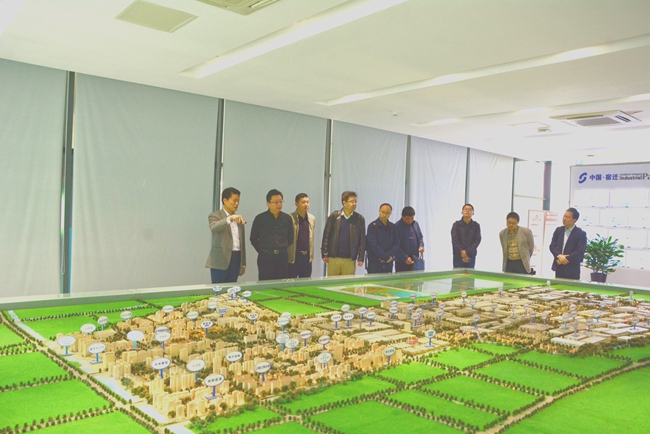 在園區(qū)管委會一樓規(guī)劃展廳,劉建華副總裁向楊民副總經理一行詳細介紹了園區(qū)先進的規(guī)劃理念和未來發(fā)展藍圖。