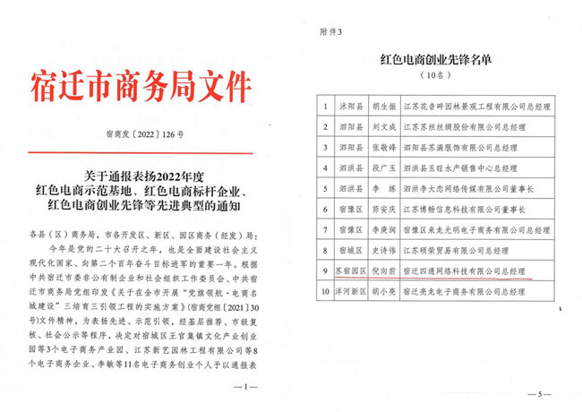 黨的二十大召開之年,市商務(wù)局為擦亮“電商名城”牌子,激發(fā)“電商名城”發(fā)展新動(dòng)能,12月15日,組織紡織服裝產(chǎn)業(yè)鏈黨建工作暨“黨旗領(lǐng)航·電商名城建設(shè)”推進(jìn)會(huì)。園區(qū)企業(yè)家四通科技董事長(zhǎng)倪向前獲得“紅色電商創(chuàng)業(yè)先鋒”榮譽(yù)稱號(hào)。
