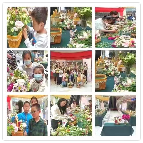 活動(dòng)現(xiàn)場,花藝?yán)蠋熢敿?xì)講解了花藝的歷史淵源、特色、插花類型和技巧,并手把手傳授插花實(shí)操要領(lǐng)。在老師的指導(dǎo)幫助下,參與的媽媽和孩子們邊看邊學(xué),認(rèn)真創(chuàng)作,將原本普通的花草經(jīng)過巧手制作成精致的插花作品?;顒?dòng)得到了媽媽和孩子的廣泛參與,尤其是媽媽們手捧著自己孩子制作的色彩鮮艷、錯(cuò)落有致的花束拍照留念,臉上溢滿了幸福。
