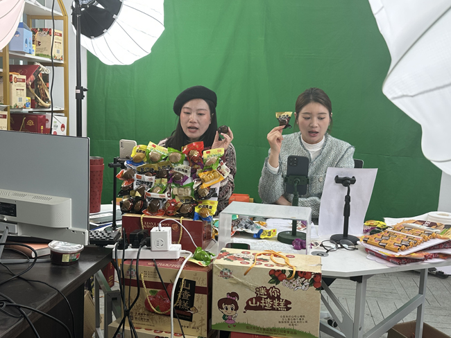 當(dāng)天,電商產(chǎn)業(yè)園內(nèi)的“直播大棚”人氣爆棚。主播們?cè)阽R頭前與消費(fèi)者展開互動(dòng),充滿激情地介紹各類商品,通過生動(dòng)的語(yǔ)言和直觀的展示,將商品的特點(diǎn)和優(yōu)勢(shì)傳達(dá)給觀眾,引導(dǎo)他們進(jìn)行購(gòu)買,主播們還以抽獎(jiǎng)、送禮等方式增加直播的趣味和互動(dòng),吸引更多觀眾的參與。