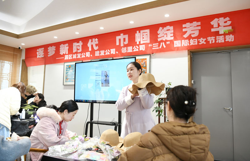 在手工制作環(huán)節(jié),女職工們化身“匠心設(shè)計(jì)師”,運(yùn)用絲帶、花草等材料精心制作專屬禮帽?,F(xiàn)場學(xué)會(huì)運(yùn)用各自的創(chuàng)意巧思,呈現(xiàn)出風(fēng)格各異的作品。