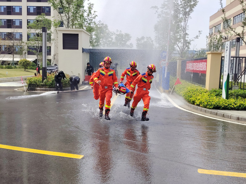 演練模擬受極端暴雨天氣影響,園區(qū)青年公寓出現(xiàn)嚴重積水、地下車庫被淹、樹木倒伏等復雜且具有挑戰(zhàn)性的防汛場景。公司防汛指揮部在接到險情報告后,迅速反應,第一時間啟動應急預案。在總指揮的現(xiàn)場指揮調(diào)度下,應急搶險隊伍迅速到達積水現(xiàn)場,隊員們熟練地安裝移動排水裝置,將路面積水強排至附近排水管道,快速緩解了路面積水狀況。對于地下車庫積水問題,同時對車庫內(nèi)的車輛進行有序疏散和安置,最大程度減少了可能的財產(chǎn)損失。演練過程緊張有序,各環(huán)節(jié)銜接緊密,各部門之間協(xié)同配合默契,充分展示城發(fā)公司應對防汛突發(fā)事件的能力,實現(xiàn)了從預案到實操的無縫銜接。