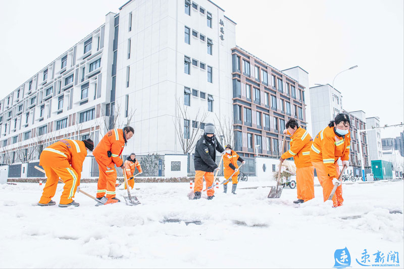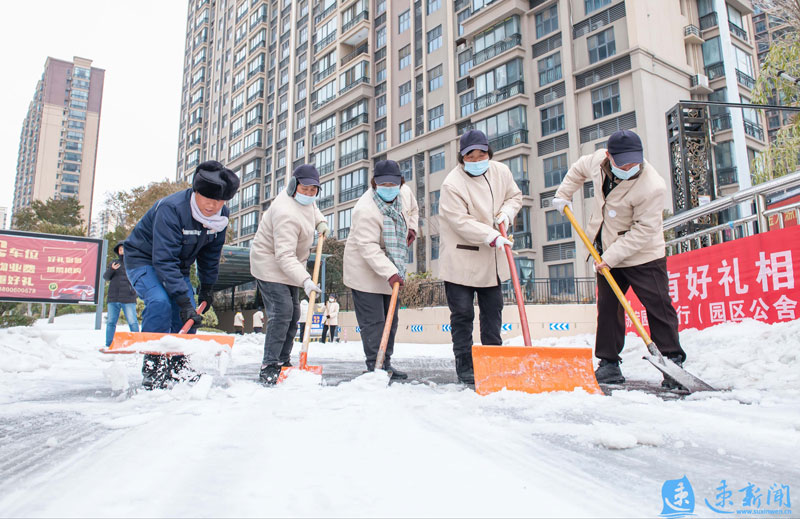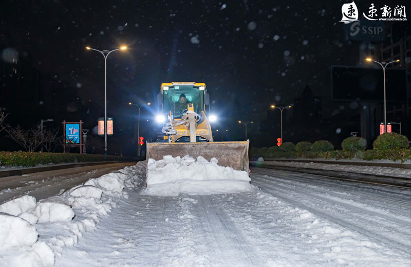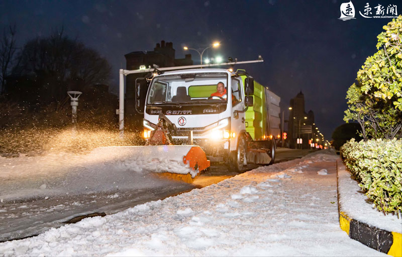 2月21日凌晨,蘇宿工業(yè)園區(qū)各部門(mén)迅速行動(dòng),組織人員、機(jī)械連夜進(jìn)行除雪作業(yè),齊力保障市民出行安全。