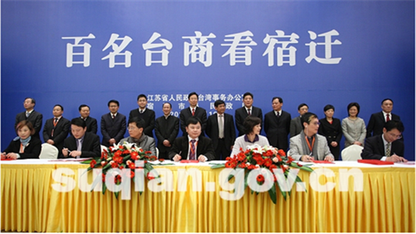 在宿遷投資環(huán)境推介會上還隆重舉行了項目簽約儀式。經(jīng)過前期深入溝通和洽談,此次“百名臺商看宿遷”活動取得了一批可喜的項目合作成果,宿豫區(qū)、宿城區(qū)、宿遷經(jīng)濟開發(fā)區(qū)和市有關部門與臺灣島內(nèi)企業(yè)共達成13個項目投資意向,協(xié)議總投資達114.4億元,涉及新能源、新材料、軟件服務外包、機械制造、環(huán)??萍肌㈦娮?、食品等多個領域。
