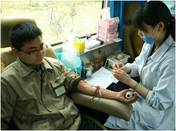 獻(xiàn)血車一開(kāi)進(jìn)可成,很多員工就圍在報(bào)名處咨詢獻(xiàn)血的具體事宜,按規(guī)定認(rèn)真的填寫表格,進(jìn)行血壓測(cè)量、血型檢測(cè)等,獻(xiàn)血的員工都希望能奉獻(xiàn)出自己的一份愛(ài)心。血站的工作人員耐心講解獻(xiàn)血須知和注意事項(xiàng),仔細(xì)檢查員工的基本情況,確保獻(xiàn)血員工的身體健康。