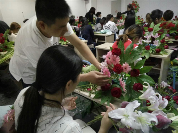 學(xué)員們在培訓(xùn)中積極參與互動實踐,按照老師要求進行花材處理、構(gòu)思設(shè)計,充分發(fā)揮自己的審美想象力,運用老師傳授的技巧,通過自己的奇思妙想完成了手捧花、圓形盆花、花籃等培訓(xùn)作品。