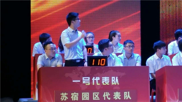 比賽現(xiàn)場(chǎng)氣氛熱烈緊張,特別是在搶答環(huán)節(jié),各代表隊(duì)你追我趕,不斷角力。遙遙領(lǐng)先的園區(qū)和洋河新區(qū)角逐冠亞軍的爭(zhēng)奪戰(zhàn),更是讓現(xiàn)場(chǎng)進(jìn)入白熱化,贏得全場(chǎng)觀眾的陣陣掌聲和喝彩。經(jīng)過(guò)“精彩亮相”、“步步為營(yíng)”、“快人一拍”和“一錘定音”等四輪激烈競(jìng)爭(zhēng),園區(qū)代表隊(duì)最終以260分的成績(jī)獲得第二名,與第一名洋河新區(qū)隊(duì)僅差10分。