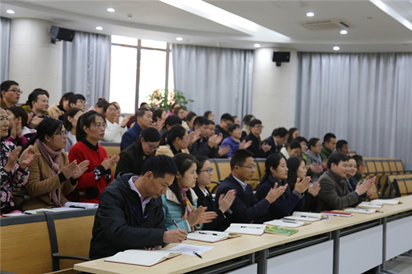 駱敏從“做教師的意義、如何成為學(xué)生心目中的好老師和如何成為大家心中的好老師”三個(gè)方面給老師們上了一堂別開(kāi)生面的專(zhuān)業(yè)發(fā)展課。駱敏指出,教師應(yīng)該具有高尚奉獻(xiàn)、完善自我的意識(shí),特別要從細(xì)節(jié)方面、從學(xué)生的角度思考,開(kāi)啟通向優(yōu)秀教師的通道。駱敏認(rèn)為學(xué)生心目中的好老師應(yīng)該是一名演說(shuō)家、幽默大師,具有獨(dú)特的教學(xué)藝術(shù),對(duì)孩子能夠真誠(chéng)贊美、懂得尊重學(xué)生、真心關(guān)愛(ài)學(xué)生。作為好老師,應(yīng)該修德、修志、修學(xué)、修能、修性,有欣賞的眼光,感恩的心態(tài)。