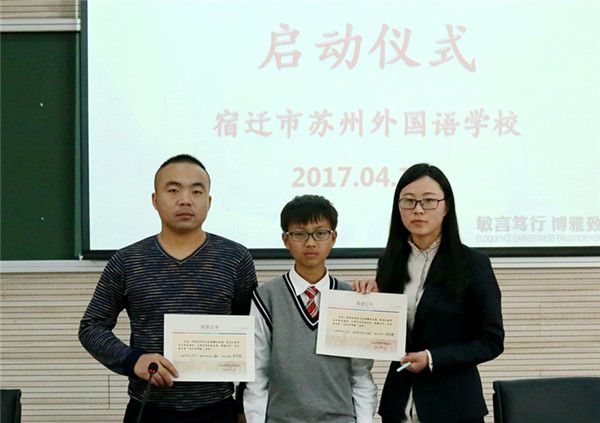 近日,宿遷市蘇州外國語學(xué)校七年級16位孩子和他們的家長監(jiān)護(hù)人還有他們新認(rèn)的“干爹”“干媽”齊聚學(xué)校階梯教室,舉行隆重的簽約儀式。這些“干爹”“干媽”是學(xué)校給首批孩子們配的成長導(dǎo)師,每位教師與一個孩子結(jié)對,全方位關(guān)心孩子的成長,陪伴孩子們一起度過快樂而充實的初中生活,力求“個個進(jìn)步,人人成星”?!俺砷L導(dǎo)師制”這種親情化、個性化、人本化的育人模式,是宿蘇外實施素質(zhì)教育,提升教育核心競爭力的需要;是宿蘇外服務(wù)家長,擴(kuò)大教育品牌影響力的需要;是宿蘇外回報社會,落實“兩聚一高”,建設(shè)和諧社會的需要。